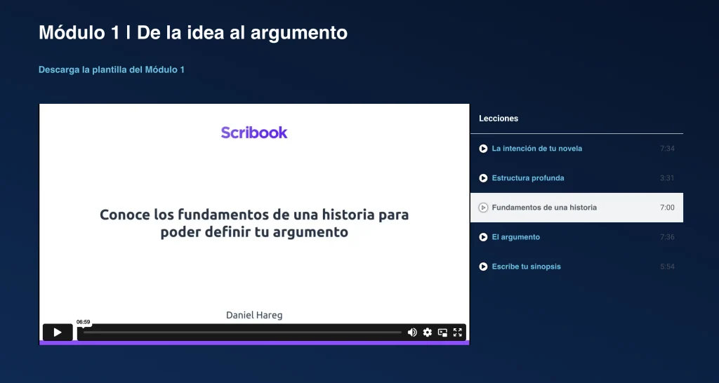 Accede a contenidos en vídeo que te explican cada paso del proceso de forma clara, práctica y amena. Aprende a tu ritmo, con explicaciones pensadas para que puedas aplicar lo aprendido directamente en tu novela.